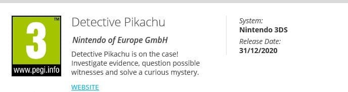 Il PEGI, il metodo di classificazione europeo per i videogiochi, ha infatti classificato Detective Pikachu per l’Europa.