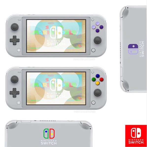Oltre al Nintendo Switch Lite, mostrato sopra e a lato, a tema Nintendo Game-Boy, ulteriori concept e design sono stati pubblicati, con design a volte carini e originali, altre volte poco originali e noiosi. Nella giornata odierna la pagina Twitter e Instagram dell’account McCoy Custom ha pubblicato ulteriori concept della console, notevolmente variegati e colorati.