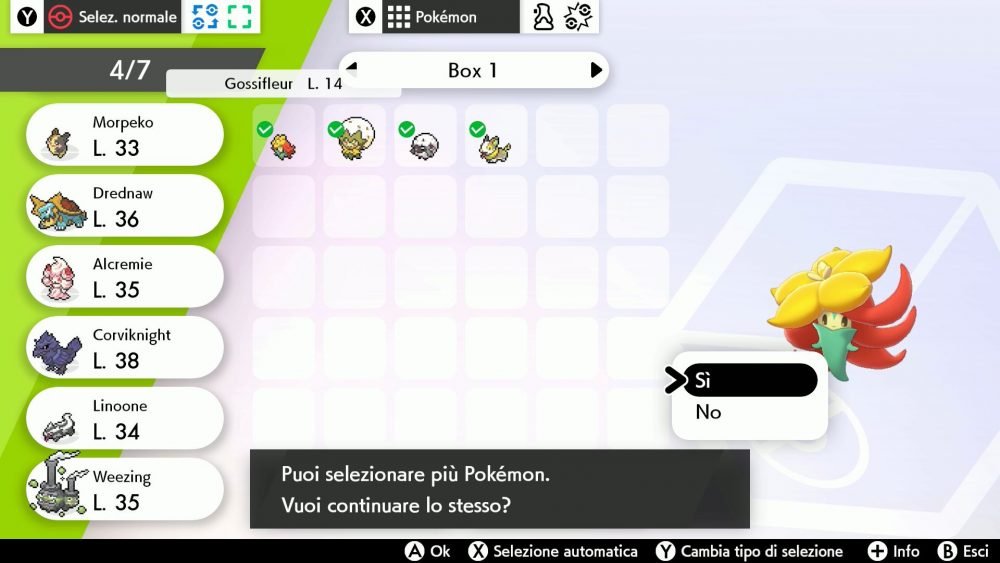 Successivamente, dopo aver selezionato il lavoro che più ci aggrada, bisognerà impostare la durata dell’incarico e poi scegliere i Pokémon da inviare direttamente dal Box.