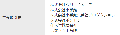 A partire dal 9 dicembre (ovvero oggi), sia Creatures Inc. che Shogakukan Production sono state eliminate da questa lista.