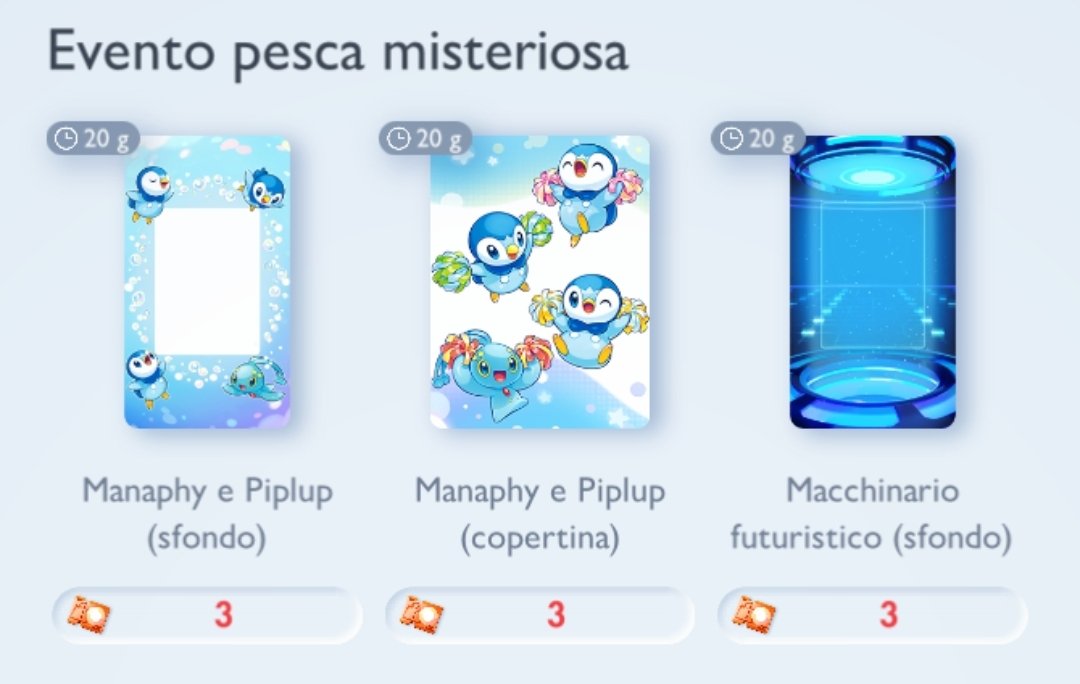 Durante l’evento, inoltre, a volte appariranno pesche extra nelle quali potremo tentare la pesca misteriosa senza consumare energia misteriosa. Le pesche extra a volte contengono oggetti o carte promozionali.