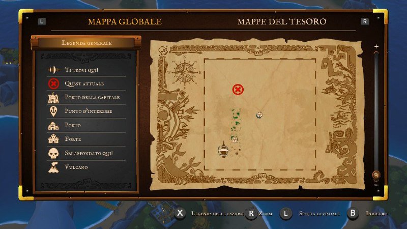 Il Diario di Bordo ci permette di tenere sotto mano tutte le missioni che abbiamo a disposizione, comprese quelle secondarie. Il menu Borsa, invece, tiene conto degli strumenti “chiave” in nostro possesso, come la mappa di gioco: la mappa di King of Seas non è nostra di diritto, e non sarà completa all’inizo. Dovrà essere acquistata dai vari cartografi sparsi nel mare!