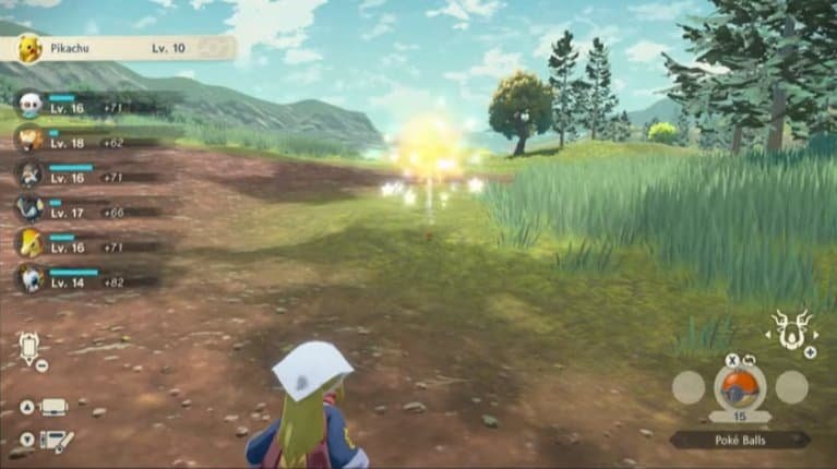 La parte in questione ritrae la cattura da parte di Luce, la protagonista femminile, di un Pikachu. Una volta finita la cattura, potete notare come la sua squadra di mostriciattoli, sulla sinistra sotto il nome del Pokémon ottenuto, riceva dei punti esperienza.