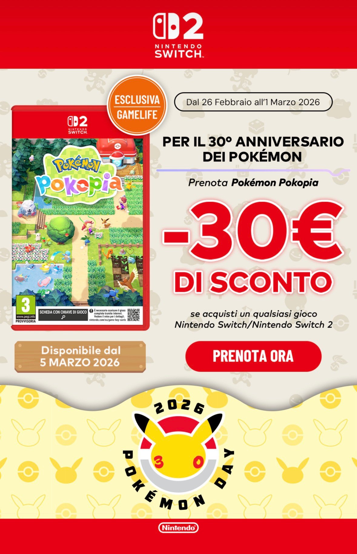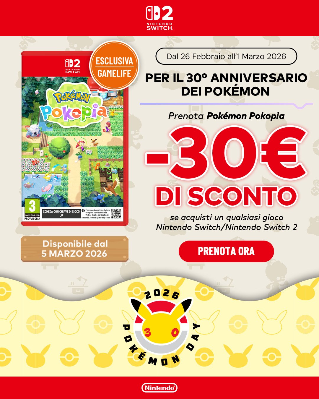 La notizia sta facendo il giro del web: è possibile prenotare la propria copia di Pokémon Pokopia da GameLife approfittando di uno sconto immediato di 30€ acquistando un altro titolo per Nintendo Switch o Switch 2 su una lista selezionata.
