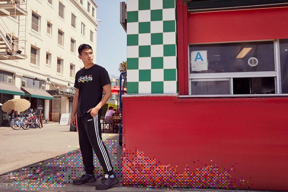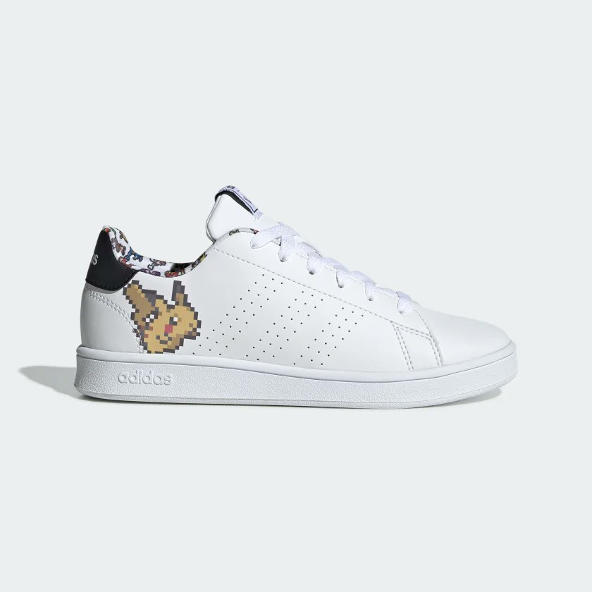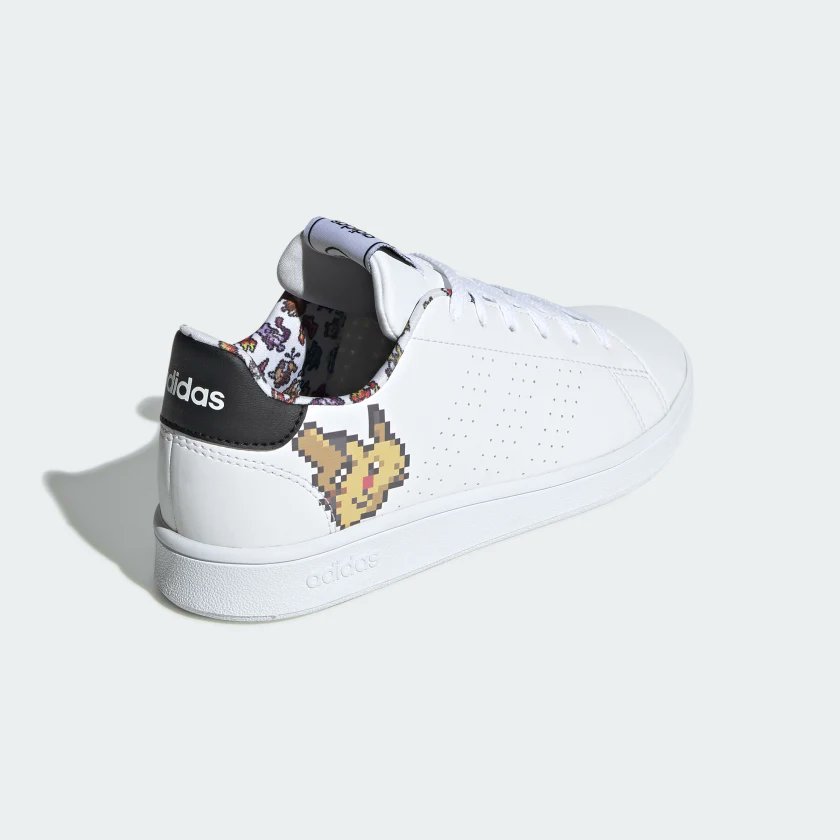 L’estetica della sneaker richiama in modo diretto il Pokémon artificiale, tra i più iconici e potenti della prima generazione. La base è dominata da un rosa acceso, arricchito da inserti viola su punta, Three Stripes e fodera interna, un chiaro riferimento alla palette del personaggio.