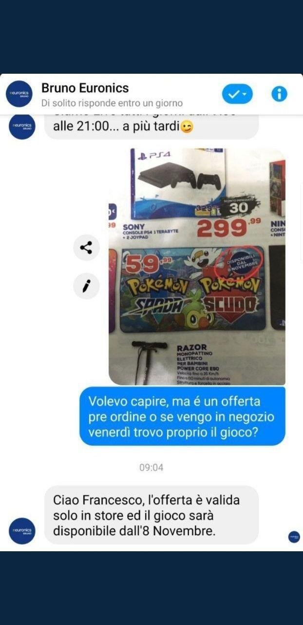 Supponiamo quindi che la famosa immagine che circola nel web deriva dal fatto che il gestore della pagina Facebook, vedendo nel messaggio la foto del volantino, ha pensato realmente che Pokémon Spada e Scudo saranno disponibili dalla data indicata nel volantino piuttosto che controllare di persona.