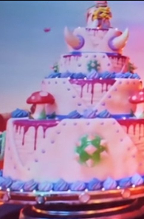 La torta ricorda moltissimo quella vista nel manga Super Mario Adventures, fumetto uscito nel 1992 che racconta la storia della principessa del Regno dei Funchi rapita da Bowser deciso a sposarla per farla diventare la madre dei suoi sette figli.