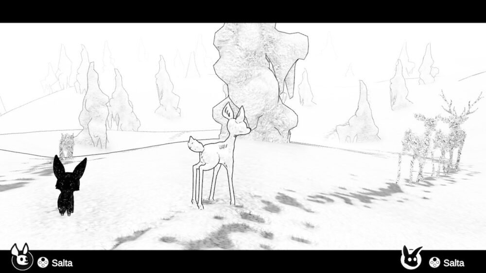 Uno dei principali punti di forza di Blanc si rivela essere sin da subito la sua ambientazione e l’atmosfera che riesce a creare. All’inizio del titolo bisognerà passare una sezione di gioco in cui i due cuccioli sono ancora intimoriti l’uno dall’altro. Il lupo inizierà a ringhiare non appena il cerbiatto proverà ad avvicinarsi, cercando di spaventarlo.