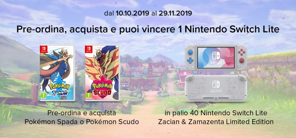 Chiunque prenoterà o acquisterà una copia di Pokémon Spada e Scudo in negozio oppure online sul sito di GameStopZing, potrà partecipare ad un’estrazione per vincere una Nintendo Switch Lite Edizione Zacian e Zamazenta!