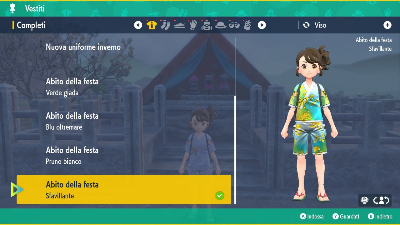 A questo punto, manca un ultimo abito della festa, che è per l’appunto quello Sfavillante. Per sbloccarlo, dovremo parlare con il responsabile del circolo comunale di Verdegiada, che si trova al Centro Nordivia. Egli darà inizio ad una raccolta fondi per ricostruire le statue dei Pokémon Beniamici, andate distrutte dopo gli eventi della storia principale.