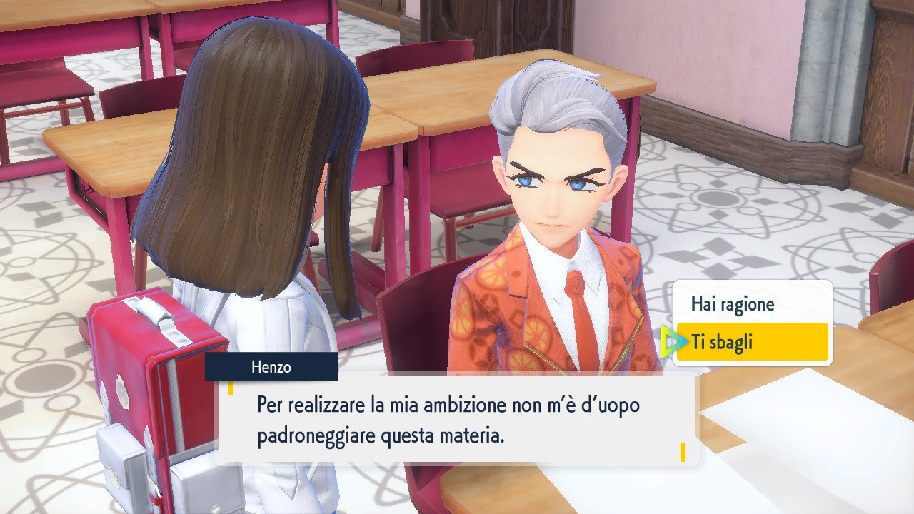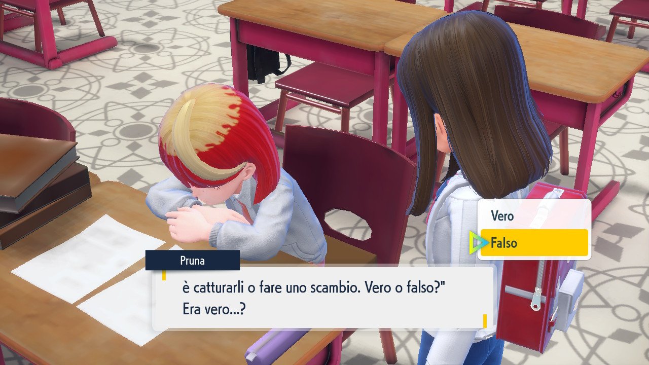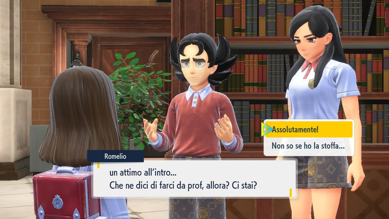 Per accedere a questo evento, dovremo soddisfare certi requisiti, ovvero completare la storyline “Il viale della polvere di stelle“, parlare con Penny all’Accademia Arancia o Uva dopo aver completato l’avventura principale, passare almeno un esame finale di una qualsiasi disciplina e, infine, completare la storia del secondo DLC. Fatto questo, troveremo Romelio e Nespera che indossano le loro divise scolastiche all’atrio dell’Accademia e, parlando con loro, inizieremo la quest.
