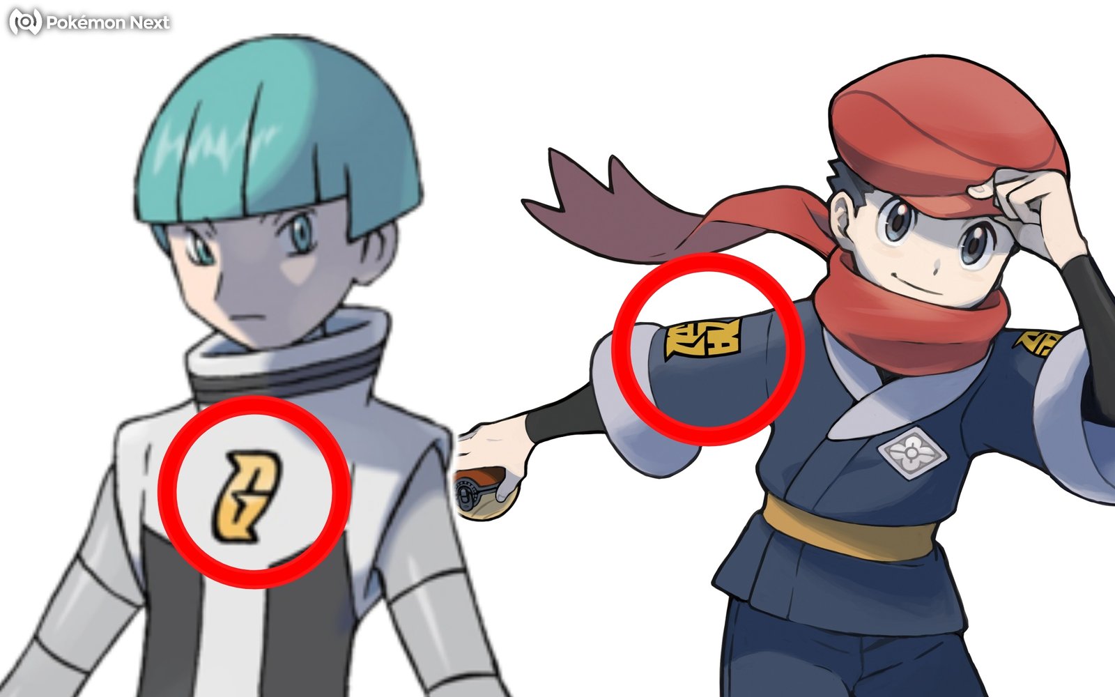 Ebbene, non vi ricorda qualcosa, soprattutto ripensando a Pokémon Diamante e Perla? A noi sì, e probabilmente anche a voi: il logo assomiglia, fin troppo, al logo del Team Galassia, anch’esso giallo e nero. Ve li mettiamo a confronto in un’immagine qui sotto (il logo a destra è tratto direttamente dall’artwork ufficiale del protagonista maschile).