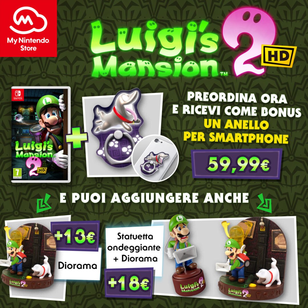 Nintendo ha reso disponibili dei nuovi pacchetti gadget per il preordine di Luigi’s Mansion 2 HD sul My Nintendo Store, poiché uno dei pacchetti precedentemente annunciati risulta attualmente fuori produzione: vediamoli insieme!