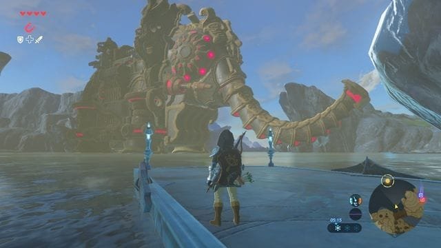 “Nei vecchi capitoli un dungeon era davvero lungo e, dal momento che questo gioco ha un campo molto ampio da esplorare e uno dei temi è trovare cose, abbiamo pensato a quale dovesse essere il ritmo del ritrovamento di Sacrari mentre i giocatori esploravano la mappa. Siamo arrivati ad un numero di circa 100 o più Sacrari. Fare labirinti lunghi e grandi avrebbe però richiesto troppo tempo, ed i giocatori ne avrebbero passato troppo al loro interno, quindi siamo giunti alla conclusione che un Sacrario ogni dieci minuti fosse ottimo. Questo però non sarebbe stato abbastanza per un gioco di Zelda, quindi abbiamo pensato di incorporare un grande dungeon tradizionale. Magari uno che si muovesse o avesse cambi di gravità, ed è così che sono nati i Colossi Sacri“.