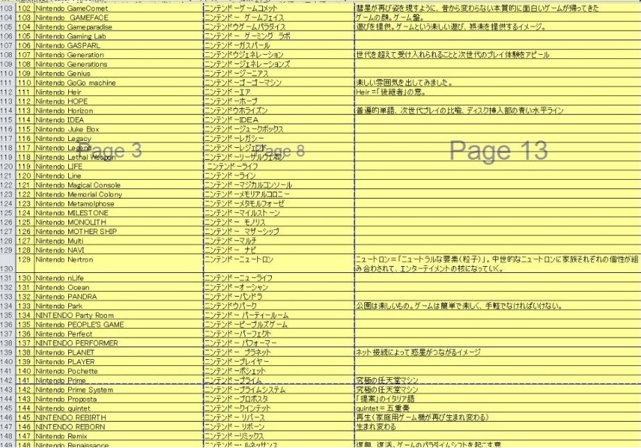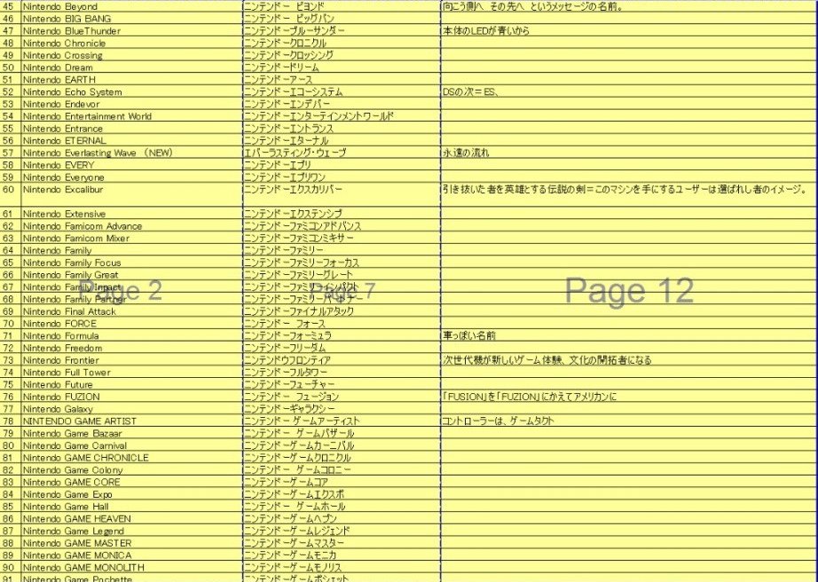 Dal documento emerge come nei primi 28 nomi ci fosse l’intenzione di riprendere il nome del NES, richiamando il termine Famicom. Nomi come Famicom Infinite, Famicon Smart o Next Famicom che andassero ad indicare il miglioramento della console stessa, riprendendo quella precedente.