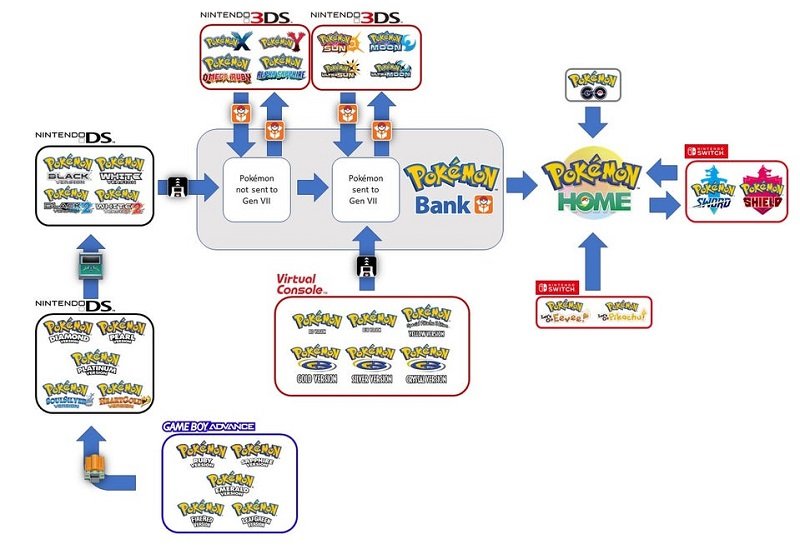 Come era già stato spiegato da The Pokémon Company stessa, gli unici giochi dove è possibile immettere Pokémon sono i titoli di ottava generazione, Pokémon Spada e Scudo; per quanto riguarda gli altri titoli, invece, lo scambio è unidirezionale: sarà possibile solo trasferire Pokémon dai precedenti giochi in Pokémon HOME, ma non viceversa.