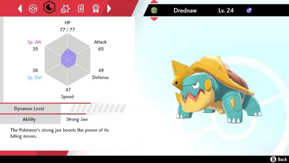 Dalle statistiche di Drednaw si presume che il Pokémon Morso di tipo Acqua/Roccia sarà principalmente un attaccante fisico con una difesa abbastanza elevata. La sua forma Gigamax unita all’abilità Ferromascella, che ricordiamo potenziare gli attacchi basati sui morsi renderanno questo Pokémon ancora più temibile.