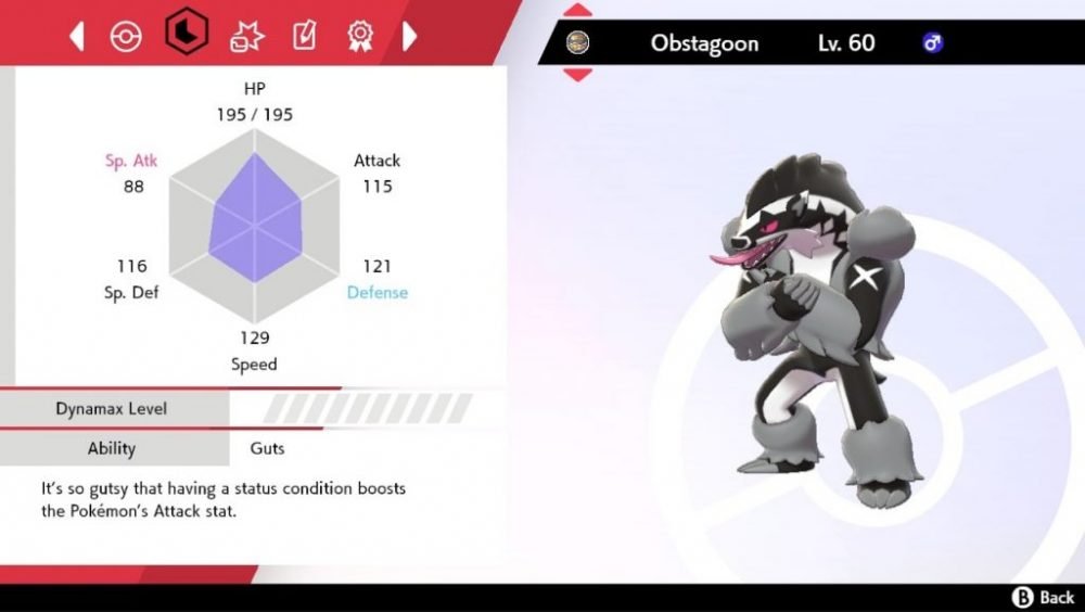 Dalle statistiche di Obstagoon (terzo stadio evolutivo di Zigzagoon di Galar) sembra che il Pokémon punterà soprattuto su Velocità e PS, che unite alle sue difese ed al suo attacco lo renderebbero utile nel panorama competitivo. La sua mossa peculiare Sbarramento, capace di bloccare le mosse del nemico diminuendone la difesa se colpito lo renderebbero ancor più interessante. Il discorso potrebbe valere anche per la sua immunità al tipo Spettro e Psico, ma la sua debolezza x4 a Lotta non gli renderà la vita facile.