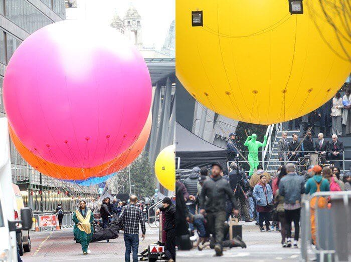In un’altra foto si possono vedere Ken Watanabe e Bill Nighty con lo sguardo rivolto al cielo, mentre guardano, presumibilmente, gli enormi palloni colorati che compaiono in un altro scatto.