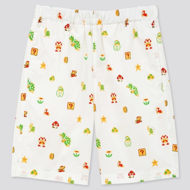 Per ora sono stati mostrati un bel po’ di capi per bambini, tra T-shirt e pantaloncini. Alcuni sono piuttosto semplici, con degli artwork di Super Mario stampati in serie, altri invece hanno fantasie più complesse. Una T-shirt in particolare, oltre al logo della serie, mostra un breve riassunto di una delle mirabolanti avventure del nostro idraulico in rosso. L’ideale per chi desidera far conoscere una delle figure più importanti del mondo videoludico ai bambini.
