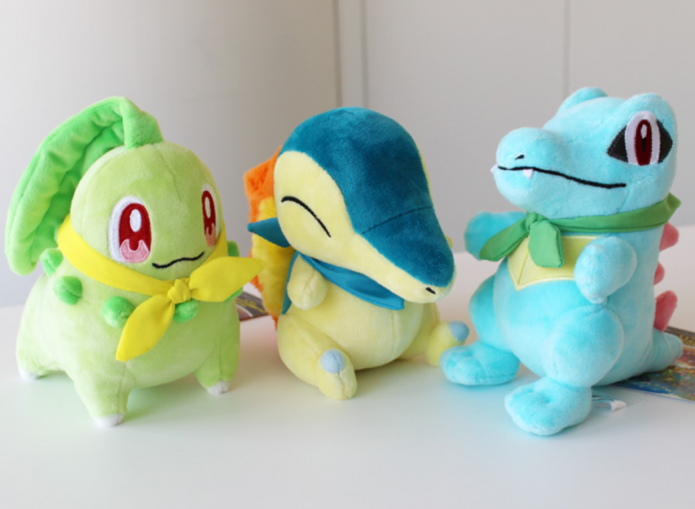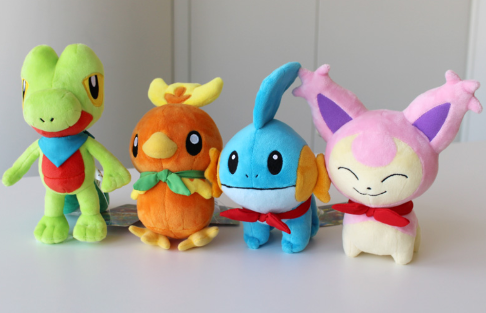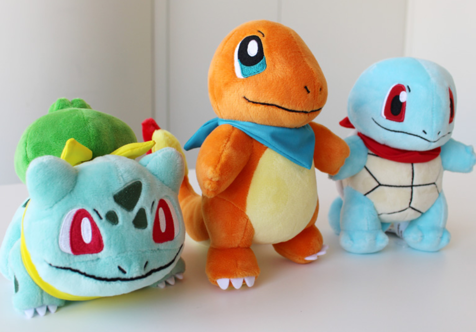 - Peluche di Bulbasaur / Charmander / Squirtle / Pikachu / Psyduck / Meowth / Cubone / Machop / Eevee / Cyndaquil / Chikorita / Totodile / Mudkip / Treeko / Torchic / Skitty / Pelliper / Kecleon (viola o verde)