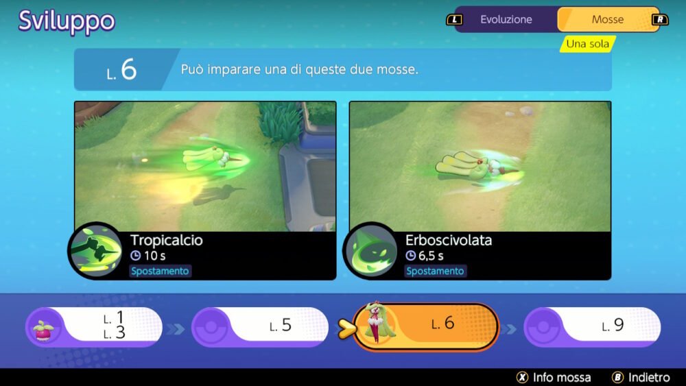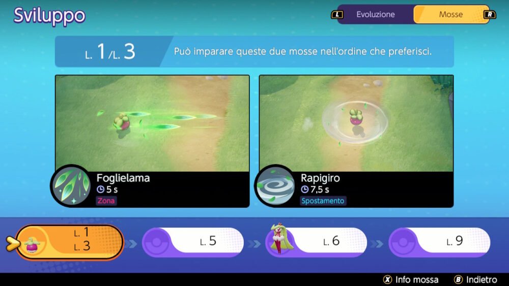 Le mosse che il Pokémon può apprendere nel corso della partita sono le seguenti:
