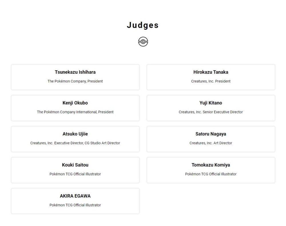 La giuria è composta da nomi altisonanti nel mondo del Trading Card Game. Vi lasciamo in basso la lista con l’elenco completo, ma giusto per citarne alcuni, troviamo Ishihara presidente di TPCi, Tanaka, Presidente della Creatures Inc., ed infine gli illustratori EGAWA, Komiya e Saitou.
