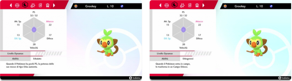 Inoltre, con un Cerotto Abilità e una porzione di Zuppamax, una zuppa aggiunta nella prima parte del DLC di Pokémon Spada e Scudo, l’Isola solitaria dell’armatura, i Pokémon iniziali della regione di Galar, ovvero Grookey, Scorbunny e Inteleon, potranno sbloccare la loro Abilità Nascosta e guadagnare il fattore Gigamax, come potete vedere confrontando queste due immagini ufficiali.
